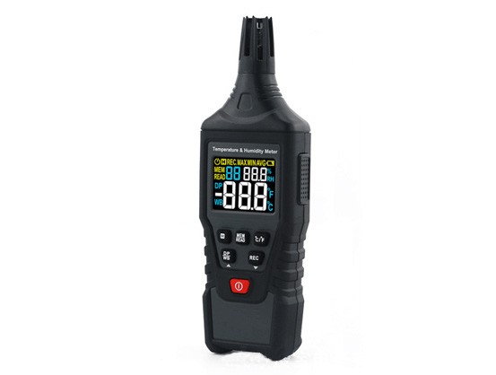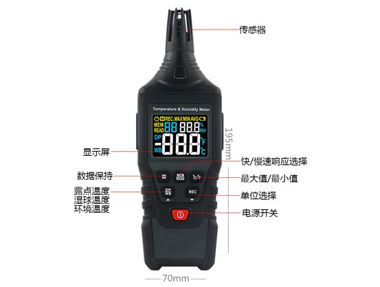 溫濕度儀是一款使用電池供電,高精度溫濕度傳感器,用于測量相對濕度和溫度的儀表;還可顯示濕球溫度和露點溫度。也是一款用于測量溫度及水分在大氣中的含量。快速、方便、精確的測量空氣中的濕度和溫度讀數(shù)。濕度測量通常依靠如溫度、壓力測量、質(zhì)量、機械或電氣變化的物質(zhì)中的水分吸收量來測量濕度,再通過校驗和計算來獲取濕度測量數(shù)據(jù)。電子設(shè)備中使用電變化電容或電阻測量濕度的差異。應用于實驗設(shè)備、工業(yè)、工程生產(chǎn)和專業(yè)用途等行業(yè)。