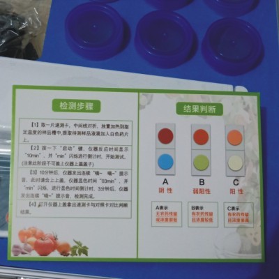 便攜式農藥殘留速測儀是根據標準方法(GB/T5009.199-2003)速測卡法(紙片法)而專門設計的儀器。利用速測卡中的膽堿酯酶(白色藥片)可催化靛酚乙酸酯(紅色藥片)水解為乙酸與靛酚,由于有機磷和氨基甲酸酯類農藥對膽堿酯酶的活性有強烈的抑制作用,使催化水解后的顯色發(fā)生改變。因此,根據顯色的不同,即可判斷樣品中含有機磷或氨基甲酸酯類農藥的殘留情況。主要用于果、蔬、茶、糧食、水及土壤中有機磷和氨基甲酸酯類農藥的快速檢測。